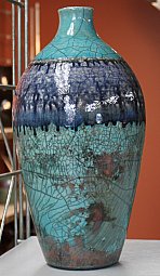 She loves to play with fire and gets satisfaction in Raku where the smoke and fire of the process combine to produce exciting patterns of color and surface texture.