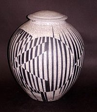 Deborah has also become a Master at the technique of Tape Resist. In this technique the Artist applies tape during the decorating phase prior to firing, often times reversing and turning patterns to create a phenomenal array of interesting geometric shapes.