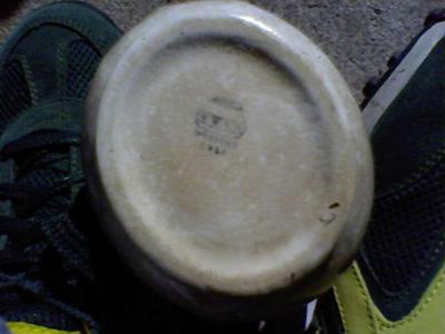 The mark is in dark green ink, in the shape of a pottery bowl. on said bowl are very tiny Swastika symbols across the bowl.