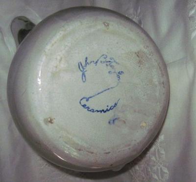 Someone gave me a pitcher marked "John B Taylor Ceramics". When I tried to look the mark up, all I could find was a mark that said "John B Taylor Made in USA". Mine just has the name. Is this an earlier mark? It would be awesome to learn when this was made.