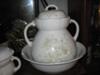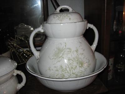 We purchased these pieces at an auction. There is also a tooth brush holder included.